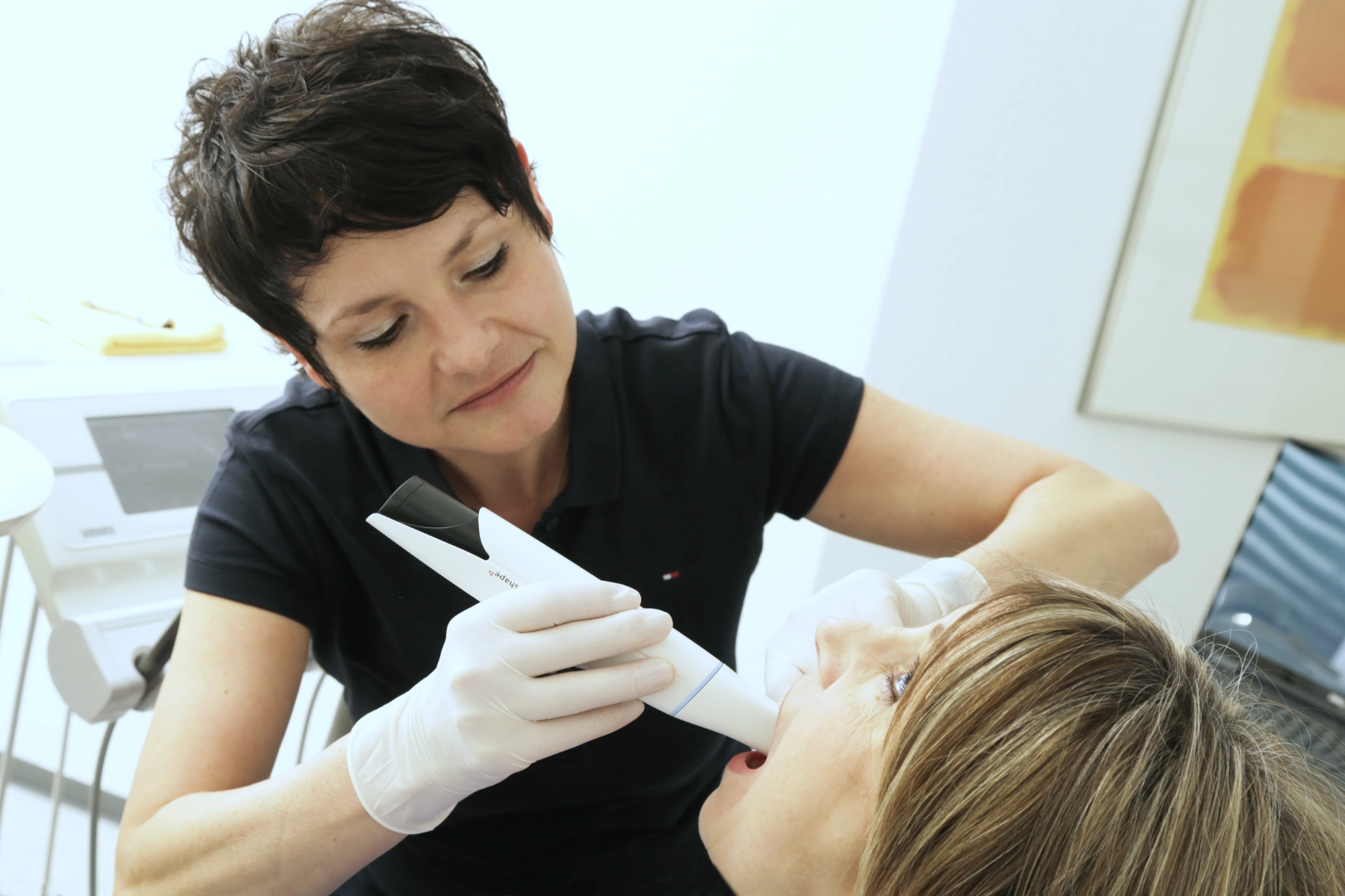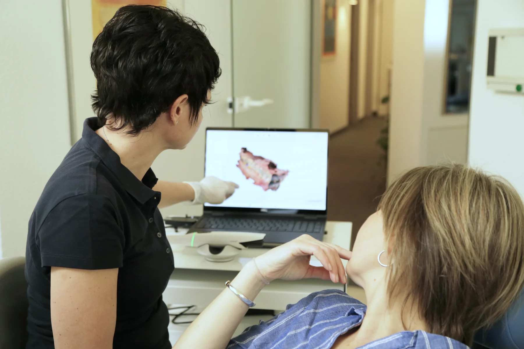 Mit unserem 3D-Scanner entfällt der unangenehme Abdruck – stattdessen scannen wir Ihr Gebiss völlig strahlungsfrei und schnell. Der Scan liefert ein präzises 3D-Modell Ihres Kiefers, das wir direkt am Bildschirm analysieren und gemeinsam besprechen können. So erkennen wir mögliche Veränderungen wie Zahnabrieb oder Karies frühzeitig und können schneller reagieren. Durch das regelmäßige Monitoring haben Sie die Möglichkeit, den Fortschritt Ihrer Zahngesundheit bei jedem Besuch zu verfolgen.